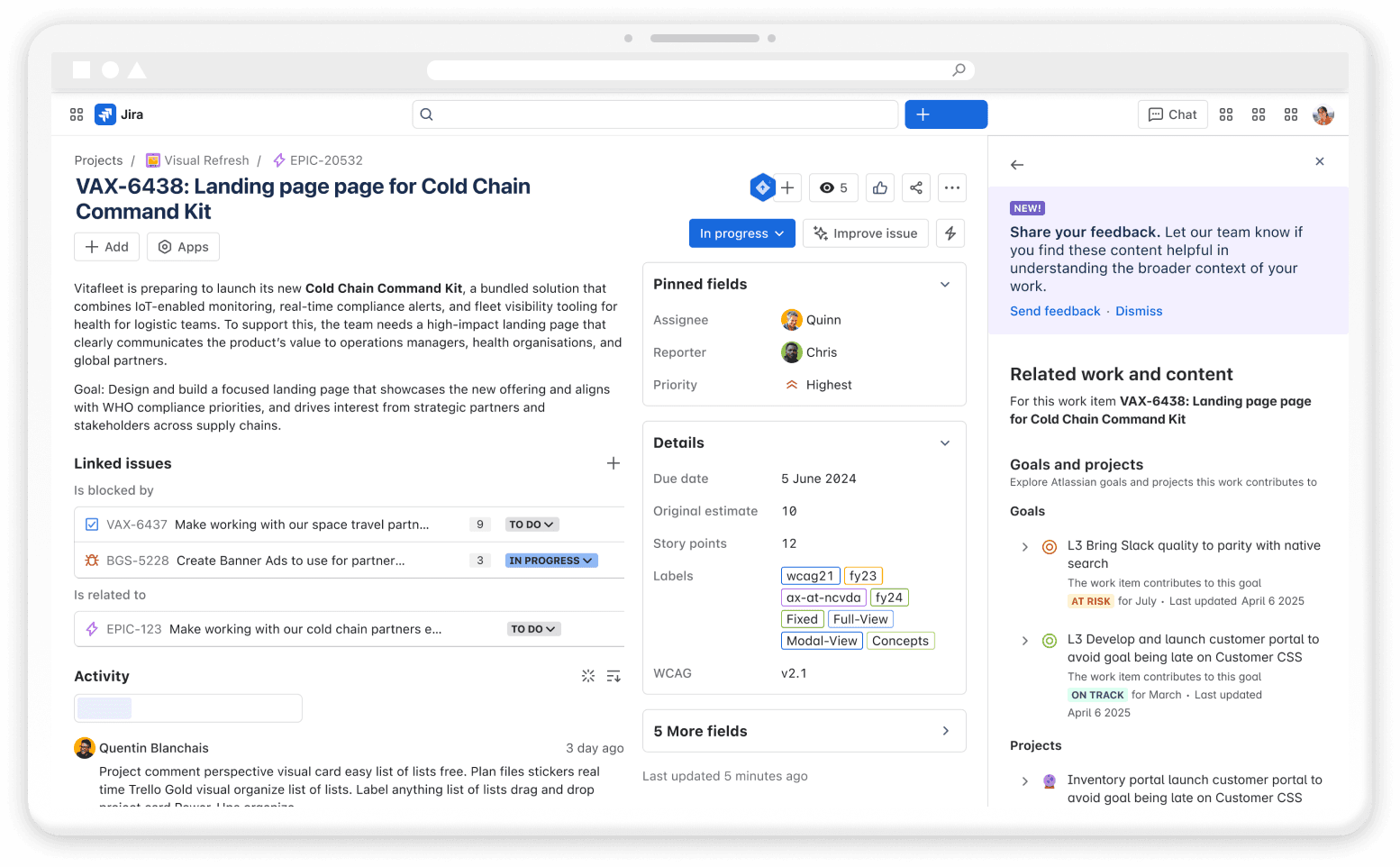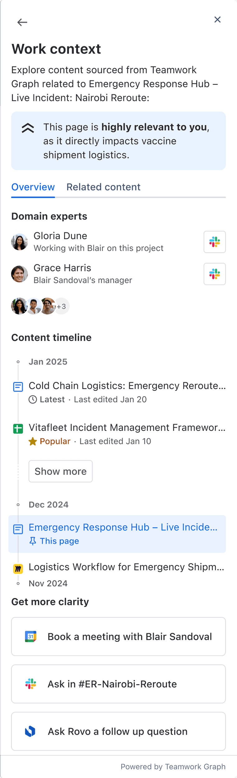 Continue to partner with Central AI so we have close awareness of the Rovo button hitting GA. At this time educate customers on Work Context while it continues to live inside the AI entry point in the near term.