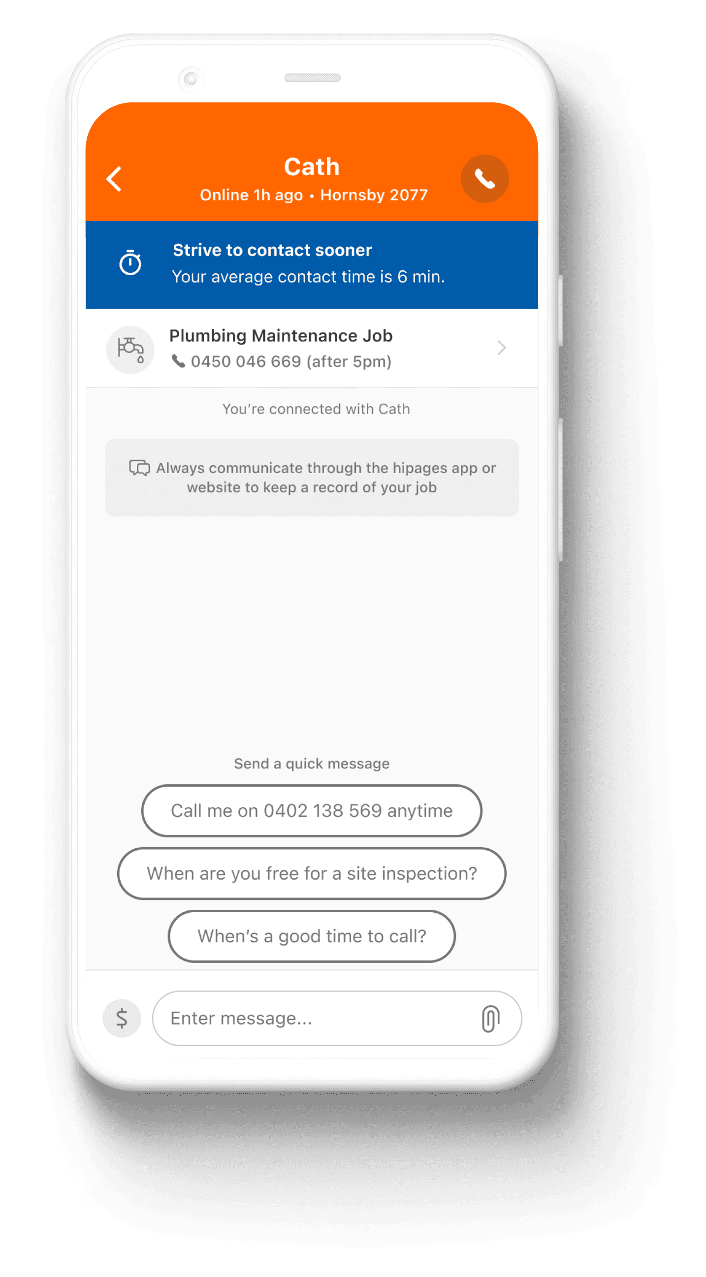 Tradies hitting the call button AND sending messages via the hipages Message Centre on average 15% quicker than previously