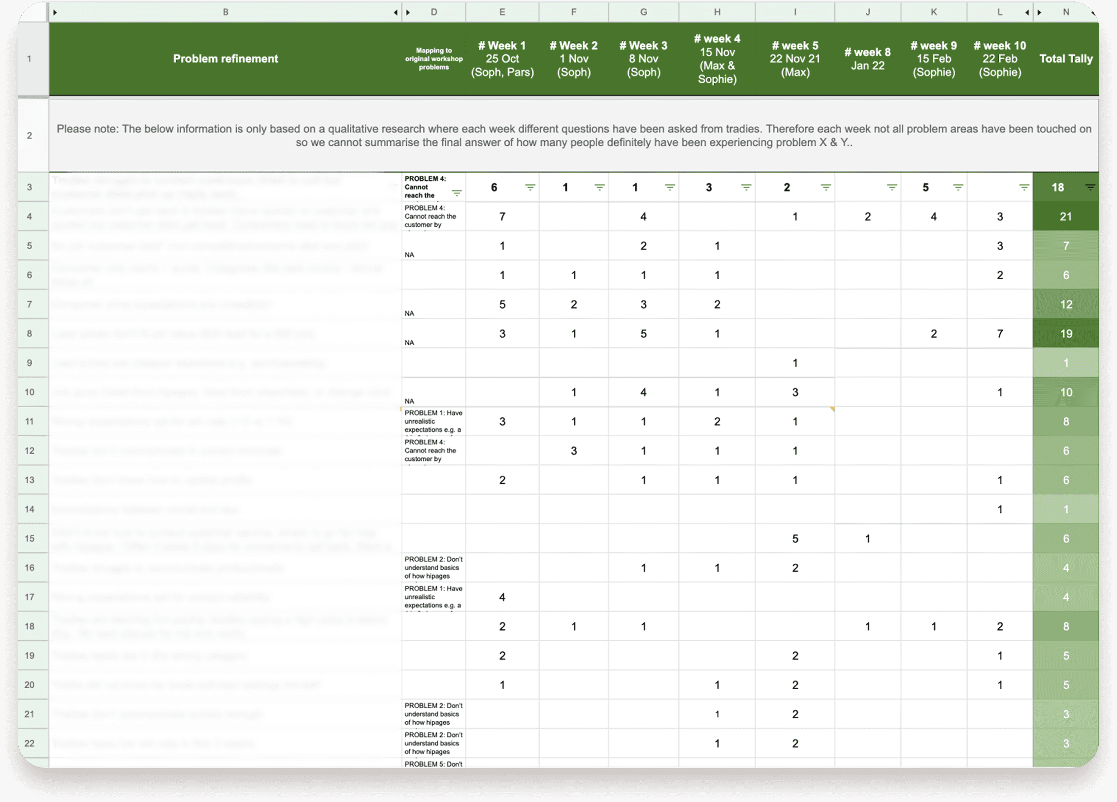 The Early Tenure Team at hipages discovered a major user & business problem during research calls with tradies, where a common problem was identified;