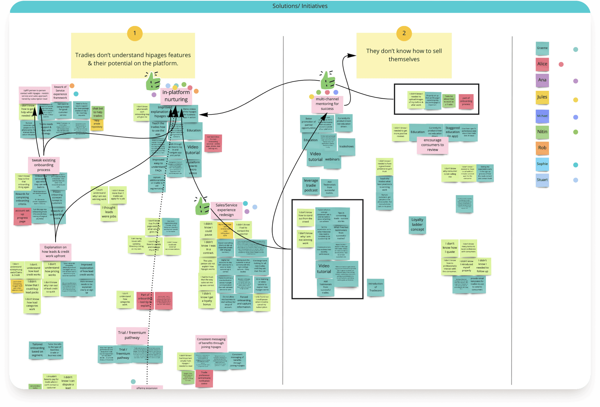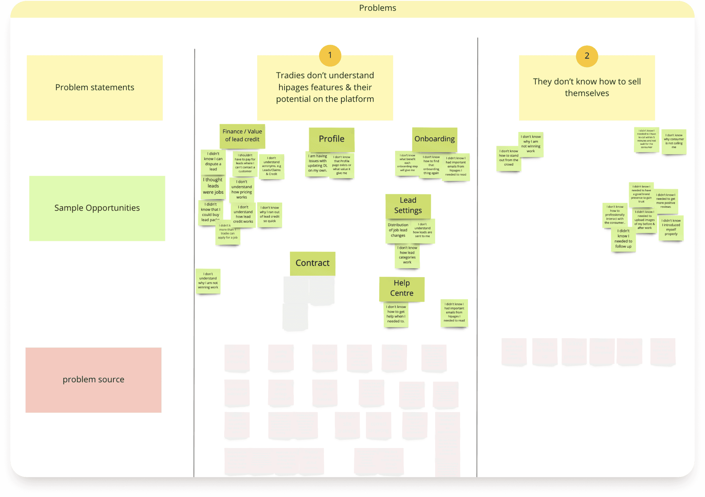 In the visualisation below I outlined the range of opportunities we were choosing between and also show some underlying causes for the chosen problem: “Tradies did not know how to sell themselves”