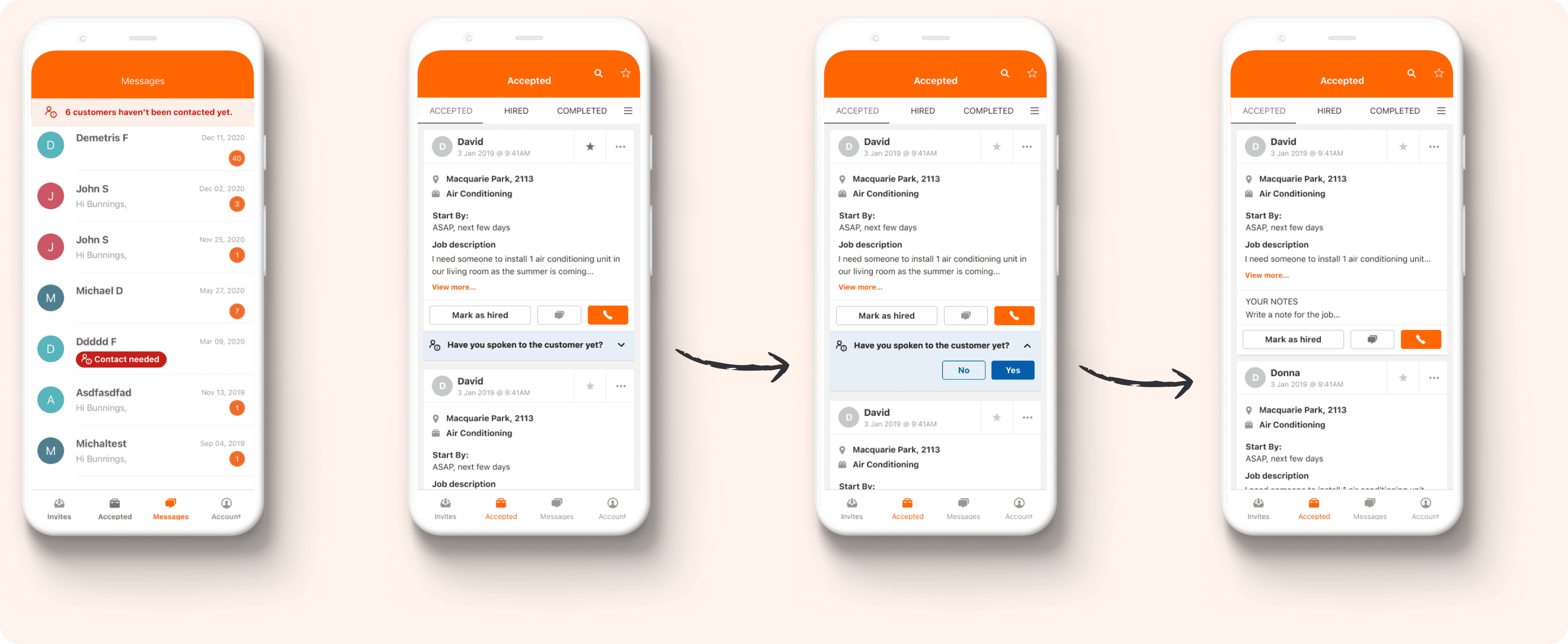 For this reason, we designed follow-up messages to prompt, motivate, and bring tradies back to the actions we wanted to direct them towards.