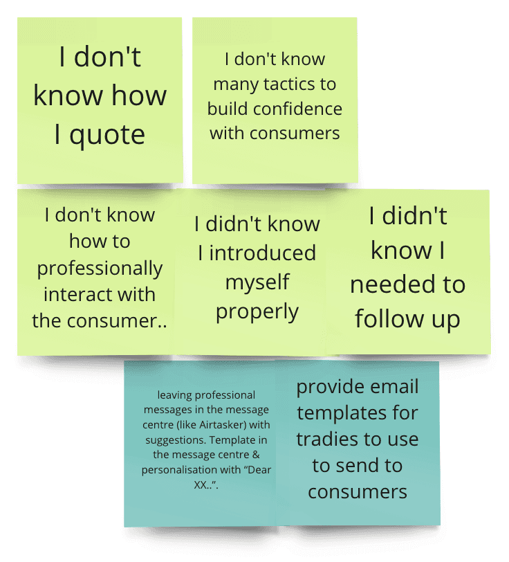 We decided to focus on the second problem “Tradies did not know how to sell themselves” which was often the case in the first couple of months of their hipages tenure.